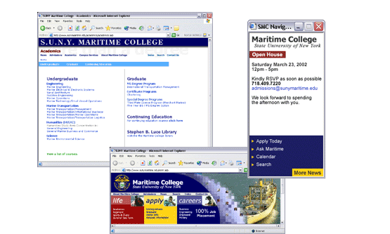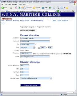 Content for the online newsletter is generated from a database, separating the content from the design and layout of the page. The news and event section is now being redesigned to tie-in with an online content management system which we developed to allow the staff rapid publishing of new information. The site provides an online inquiry form for prospective students. The form is linked directly to a legacy back-end, leveraging the College's investment in previous technology. Information captured in the database can then be analyzed and processed as usual using the College's offline administration software.